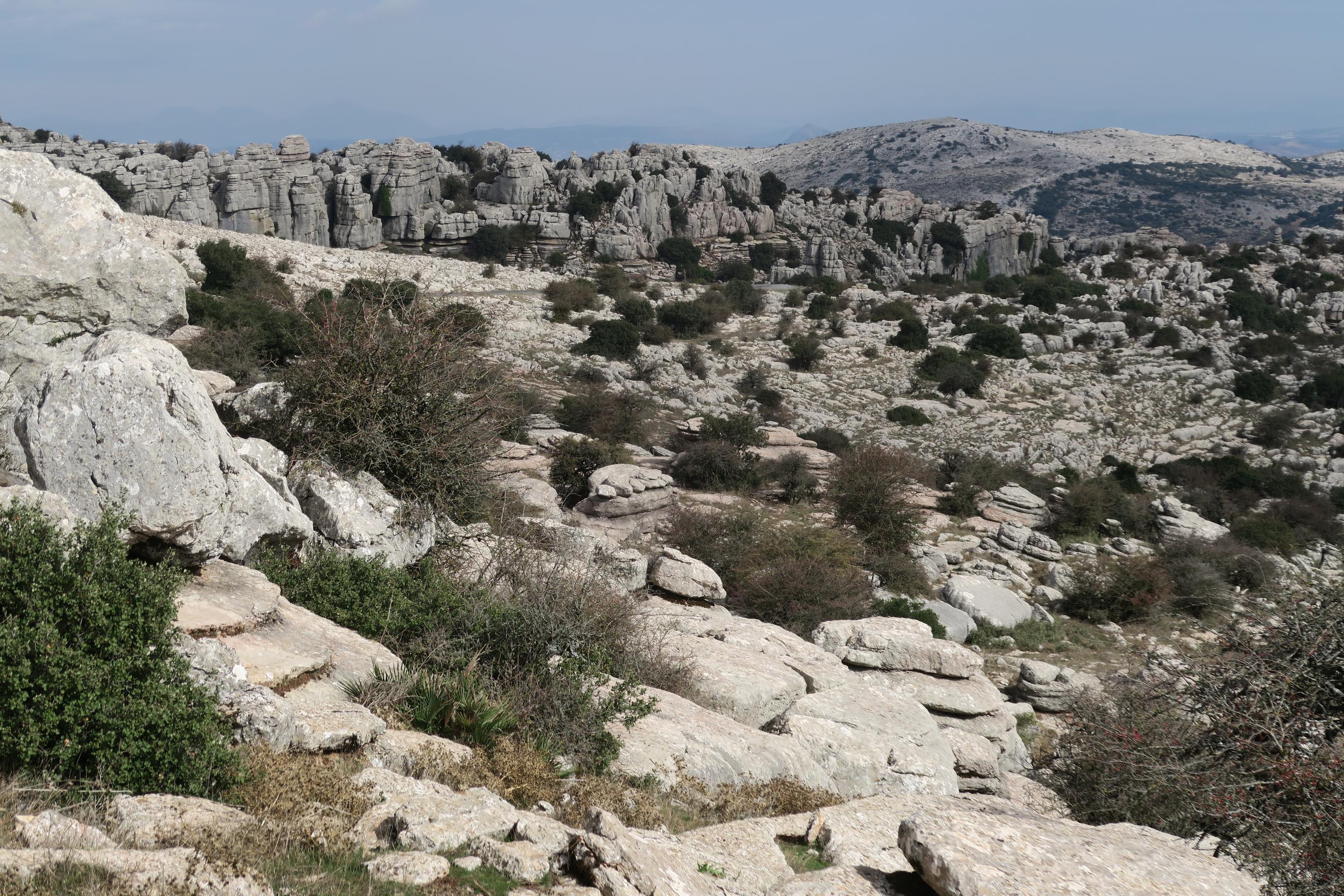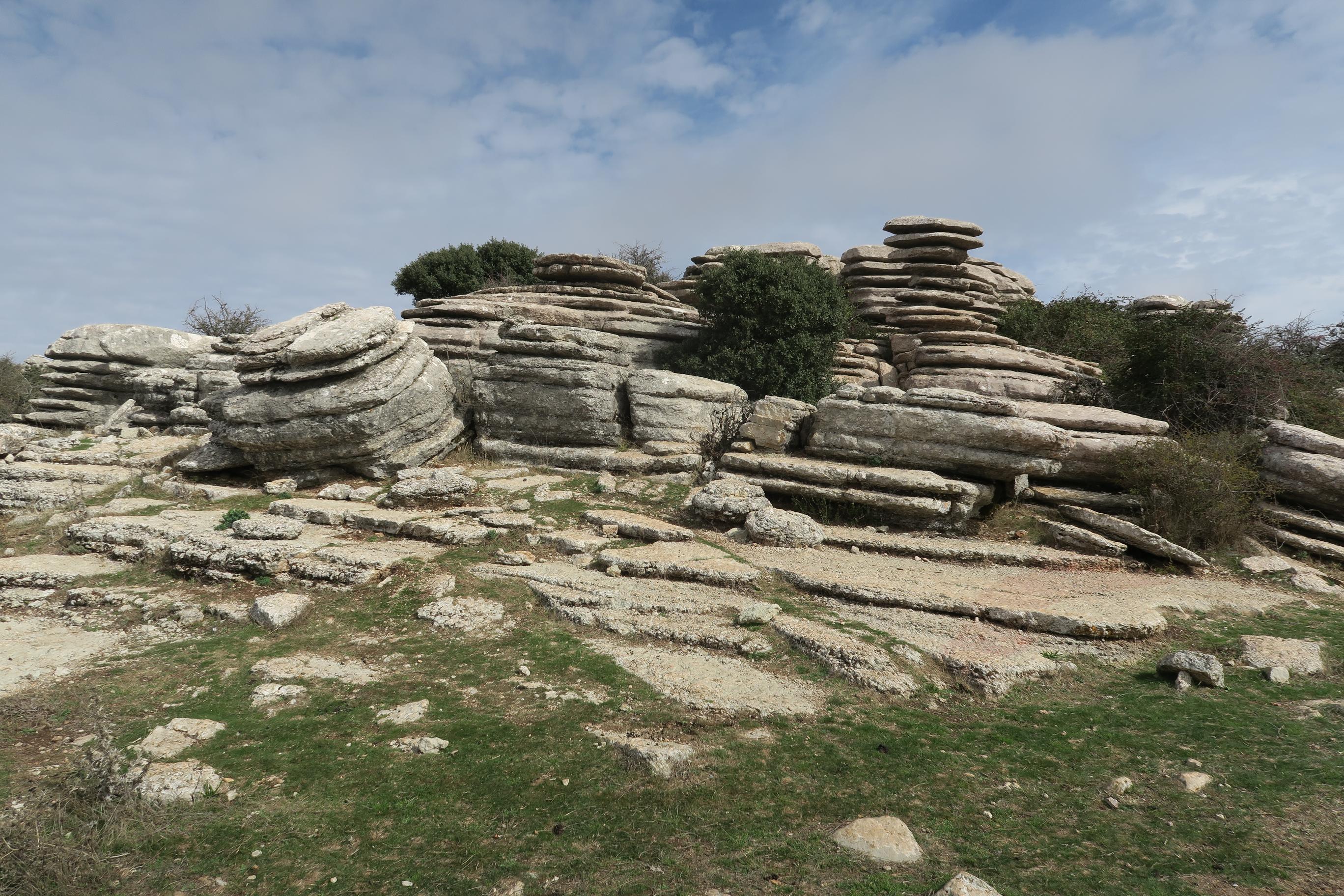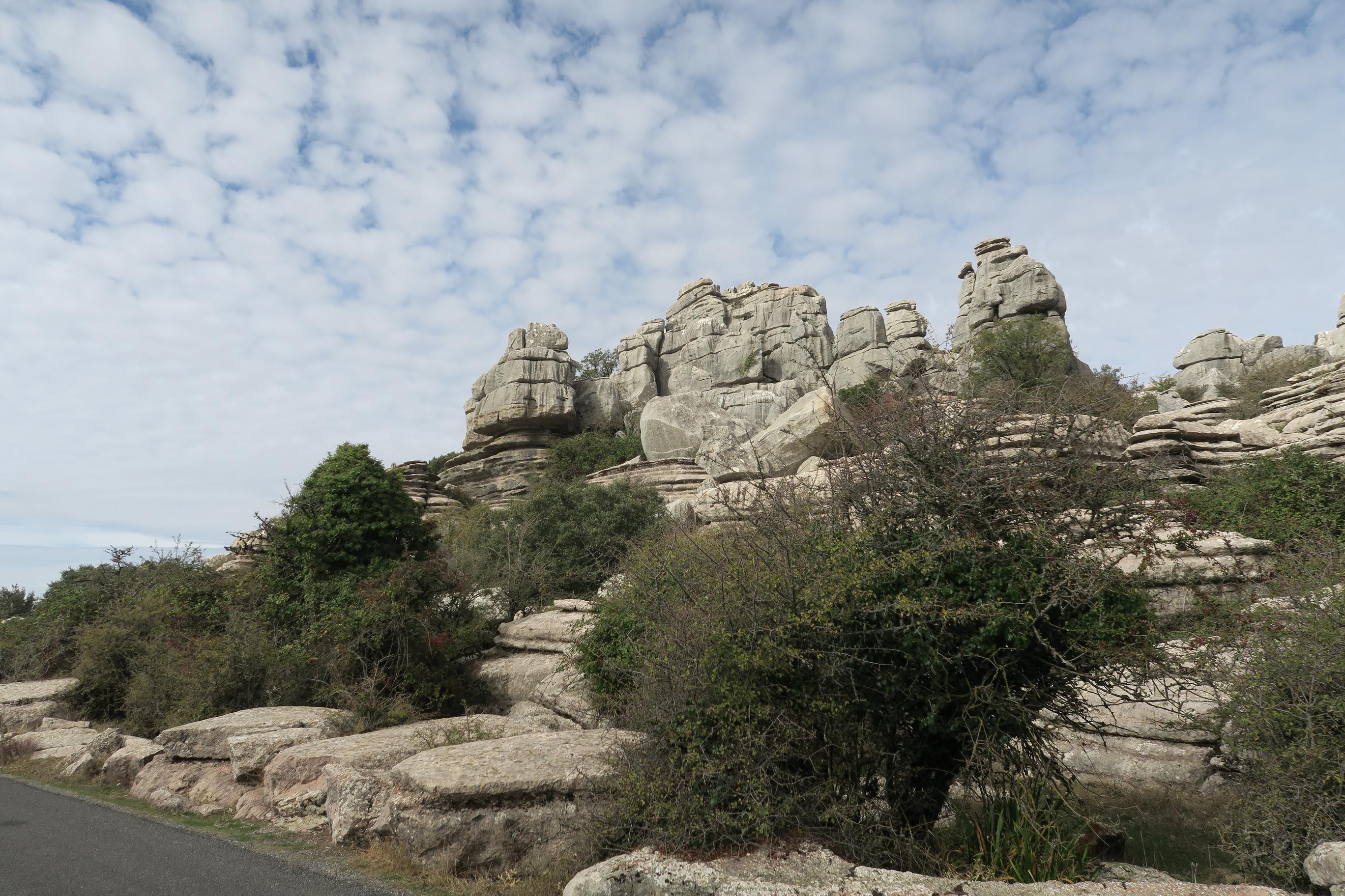 Heute hiess es Abschied von Malaga nehmen! Der Autoverleih meinte es (leider) gut mit uns und statt der bestellten kleinsten Klasse erhielten wir ein deutlich größeres Fahrzeug. Eigentlich ja nett gemeint, aber bei den oft engen Straßen und kaum verfügbaren Parkplätzen wäre uns doch kleiner lieber gewesen… Auf der Strecke gings zuerst nach „El Torcal„, einem Naturpark mit kilometerweit bizarren Karsterscheinungen und dann nach Antequera, dort die drei Hügelgräber (Dolmen) besichtigen und bewundern. Manche der Deckenplatten der über 5000 Jahre alten Bauwerke wiegen über 180 Tonnen! Nahebei liegt der „Peña de los Enamorados„, ein Berg, der stark an ein (liegendes) Gesicht erinnert.