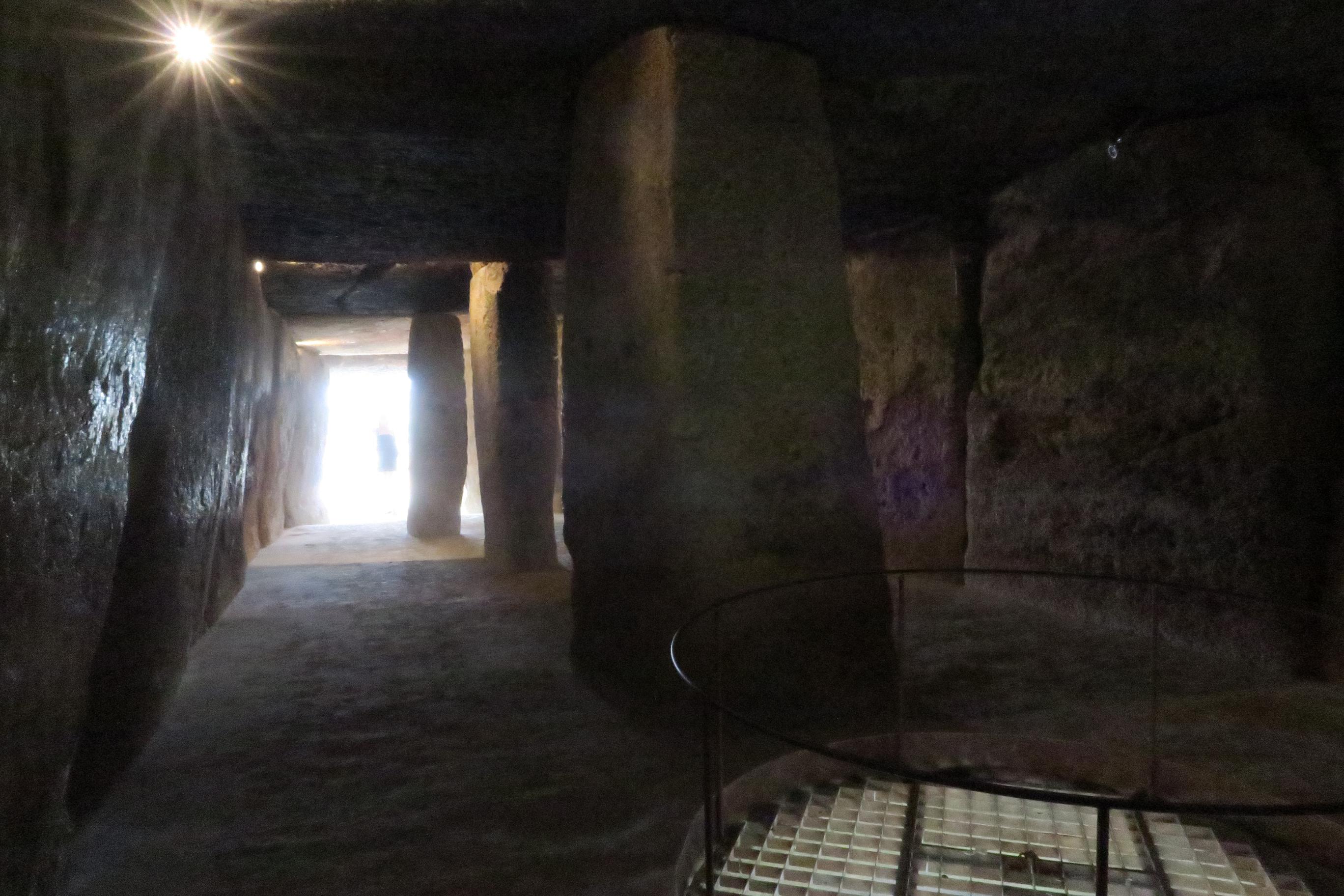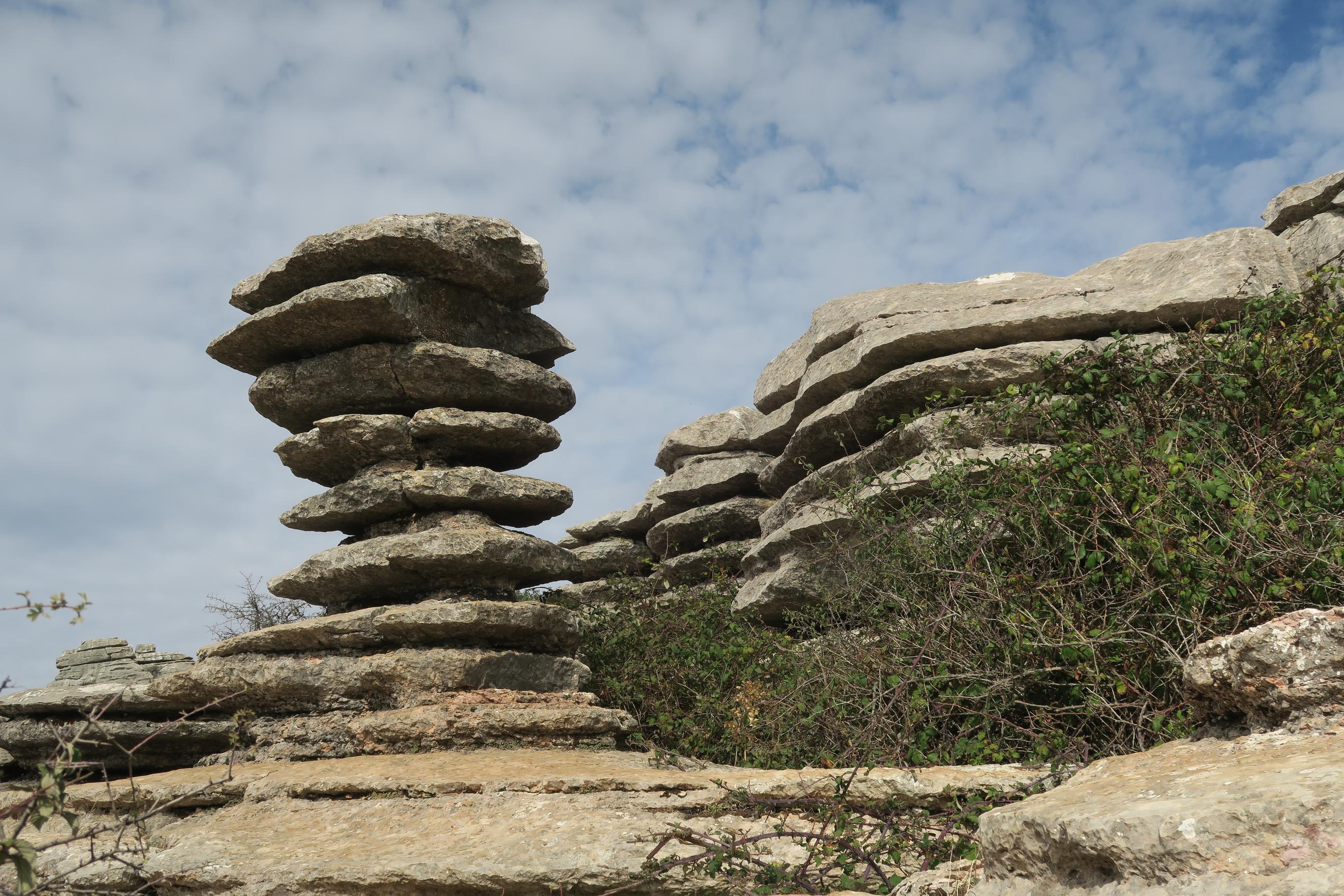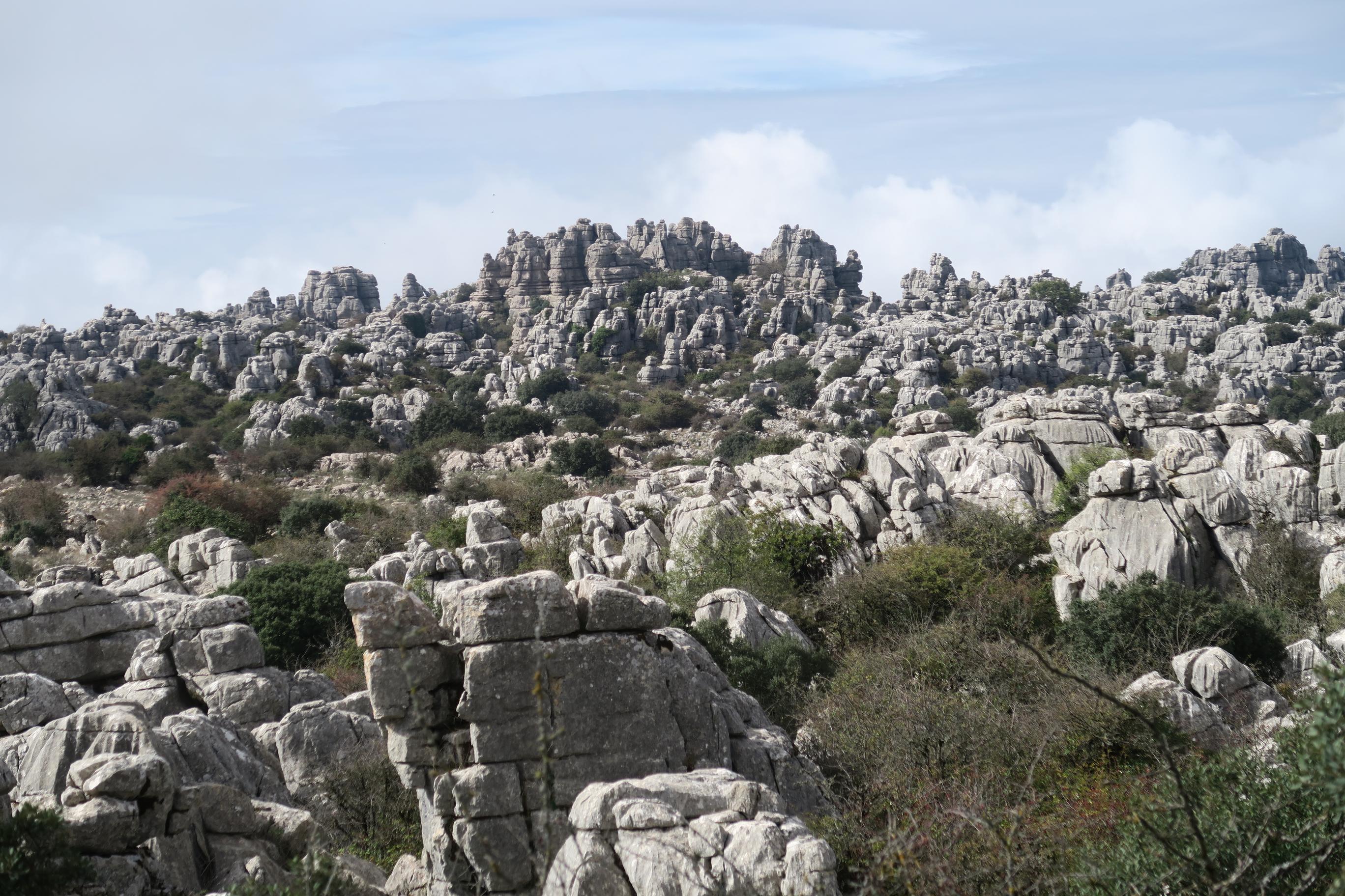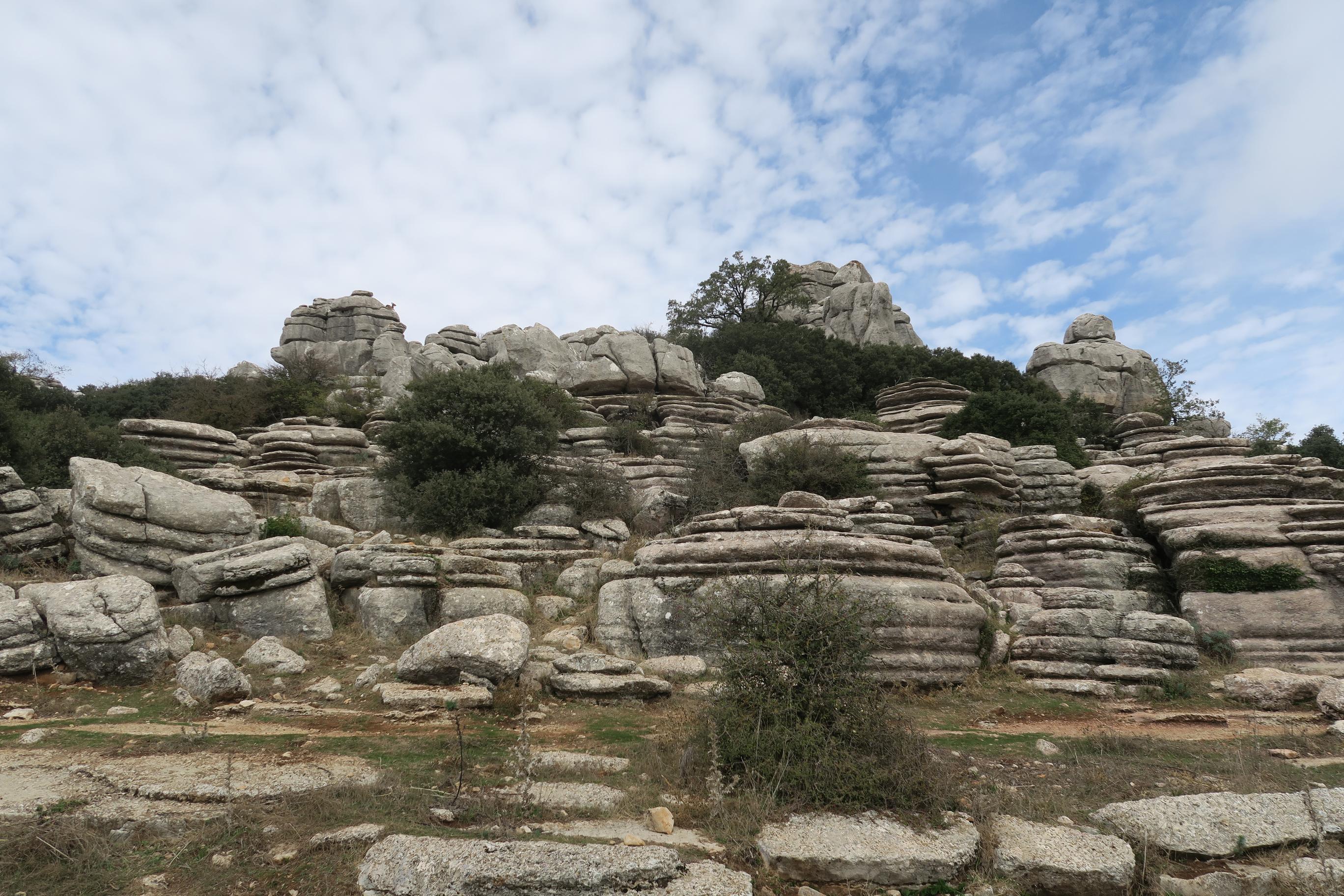 Heute hiess es Abschied von Malaga nehmen! Der Autoverleih meinte es (leider) gut mit uns und statt der bestellten kleinsten Klasse erhielten wir ein deutlich größeres Fahrzeug. Eigentlich ja nett gemeint, aber bei den oft engen Straßen und kaum verfügbaren Parkplätzen wäre uns doch kleiner lieber gewesen… Auf der Strecke gings zuerst nach „El Torcal„, einem Naturpark mit kilometerweit bizarren Karsterscheinungen und dann nach Antequera, dort die drei Hügelgräber (Dolmen) besichtigen und bewundern. Manche der Deckenplatten der über 5000 Jahre alten Bauwerke wiegen über 180 Tonnen! Nahebei liegt der „Peña de los Enamorados„, ein Berg, der stark an ein (liegendes) Gesicht erinnert.