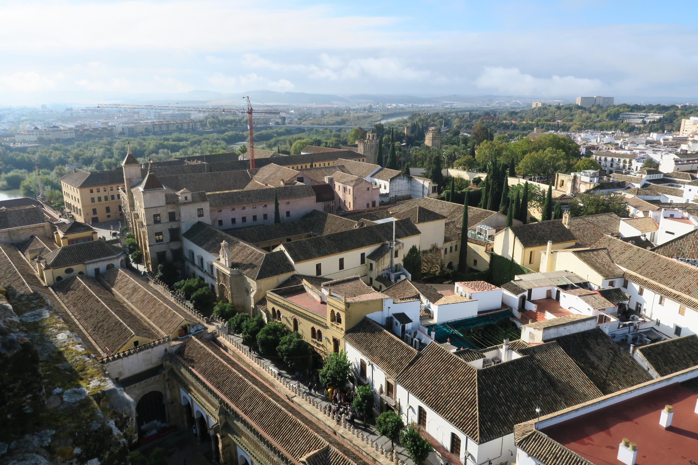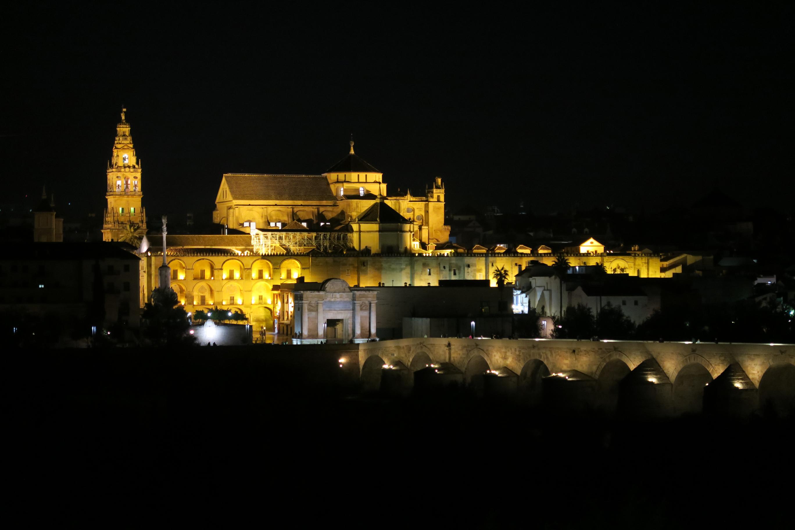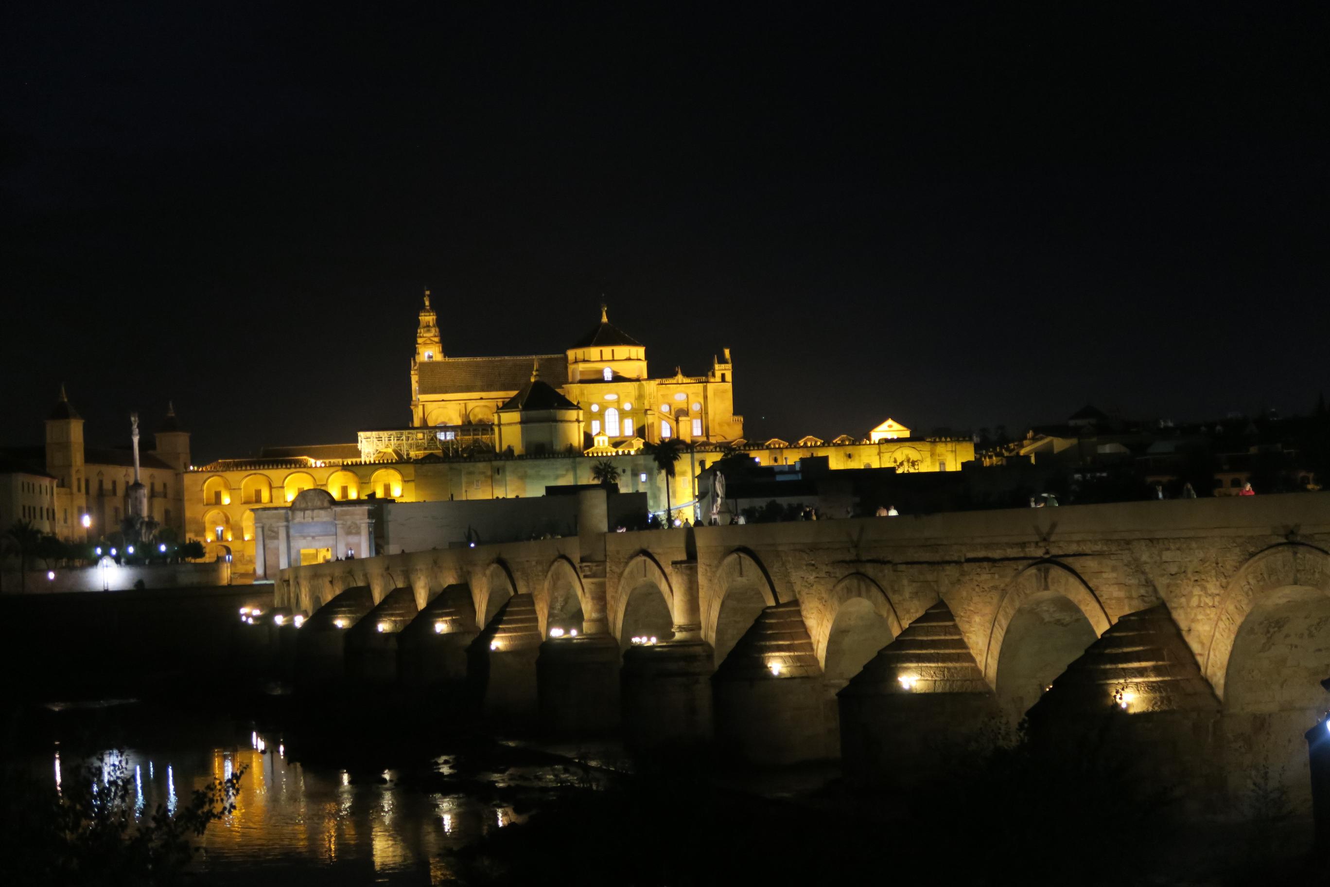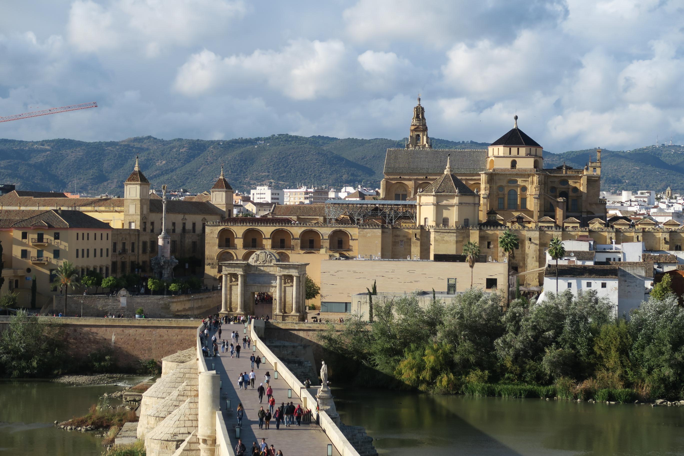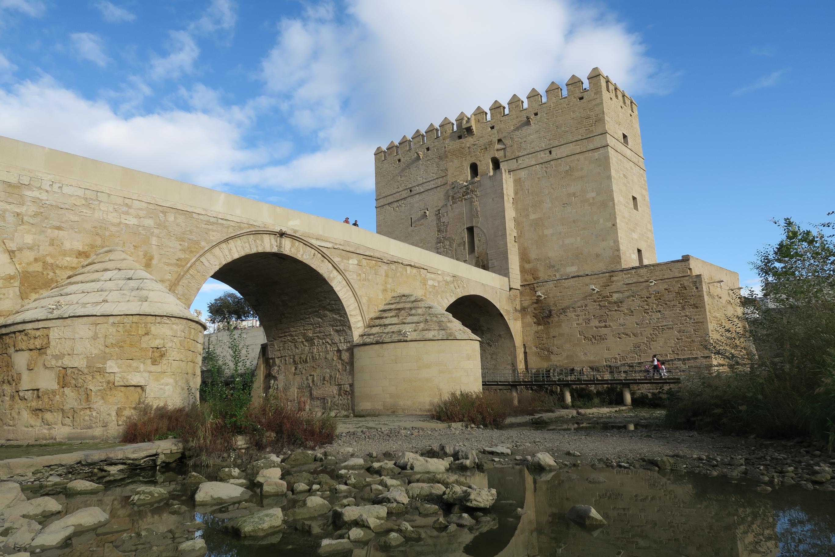 Auf der Fahrt nach Cordoba löste sich eine Abdeckung über dem linken Vorderrad und schleifte (auf der Autobahn!) kilometerlang auf der Straße, bis wir zur nächsten Ausfahrt kamen und die kaputte Abdeckung entfernten. Es lohnt sich halt doch, wenn man ein Taschenmesser dabei hat…. 🙂 Zwischendrin gings dann noch durch einen Wolkenbruch, aber wir kamen wohlbehalten in Cordoba an. Nur das Hotel fanden wir nicht…. Sind 3x dran vorbeigefahren, da der Name „vor Ort“, am Hotel angebracht,… ein ganz anderer ist, als es im Internet heisst. Aber auch das konnten wir klären und unser Zimmer mit fantastischem Blick auf die Altstadt beziehen. Nach kurzer Auspackpause gings dann noch auf einen kleinen Bummel in die Altstadt.