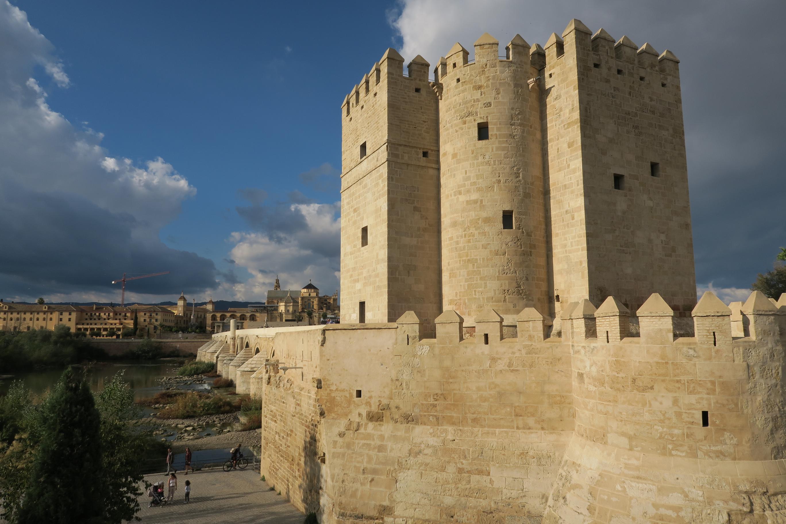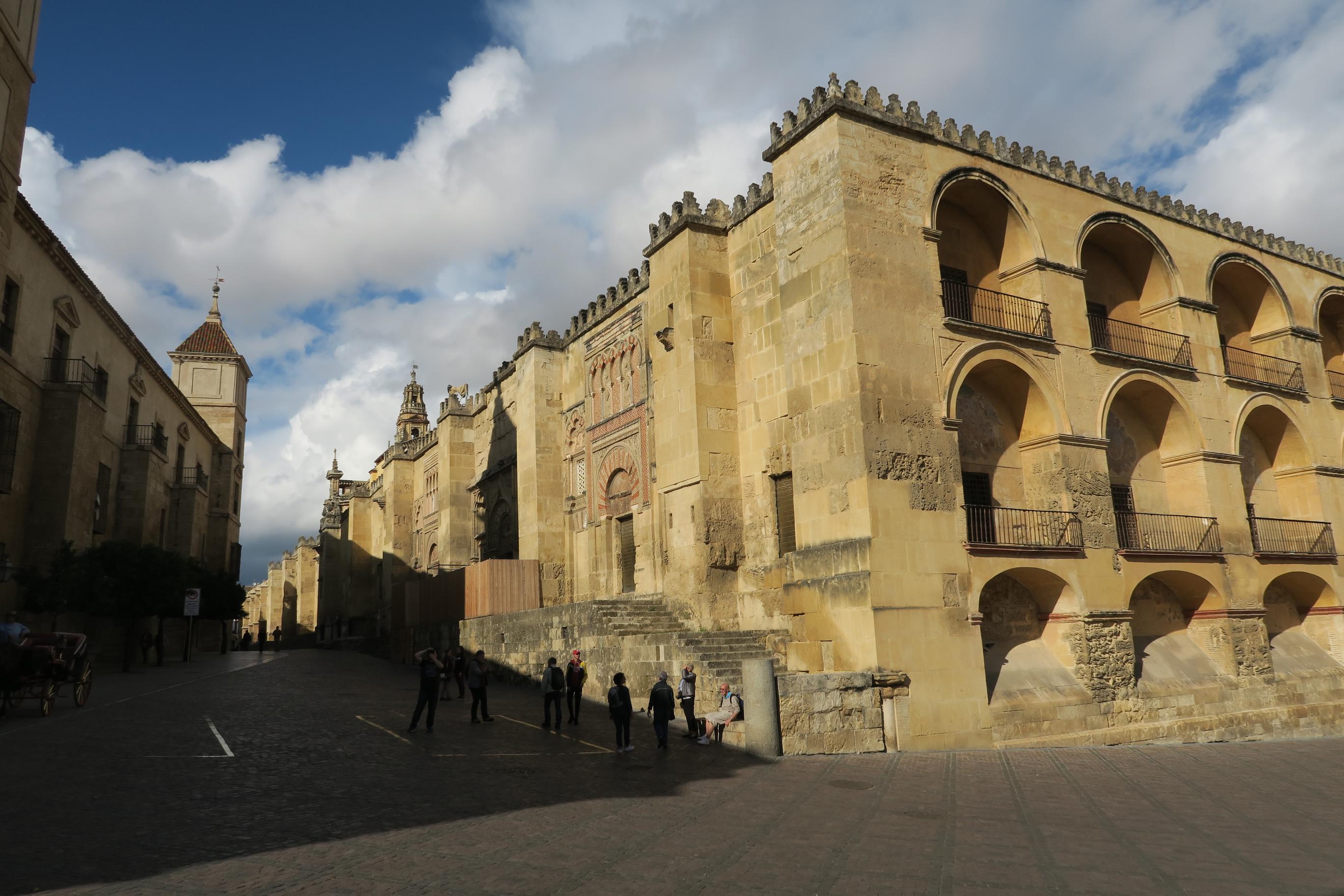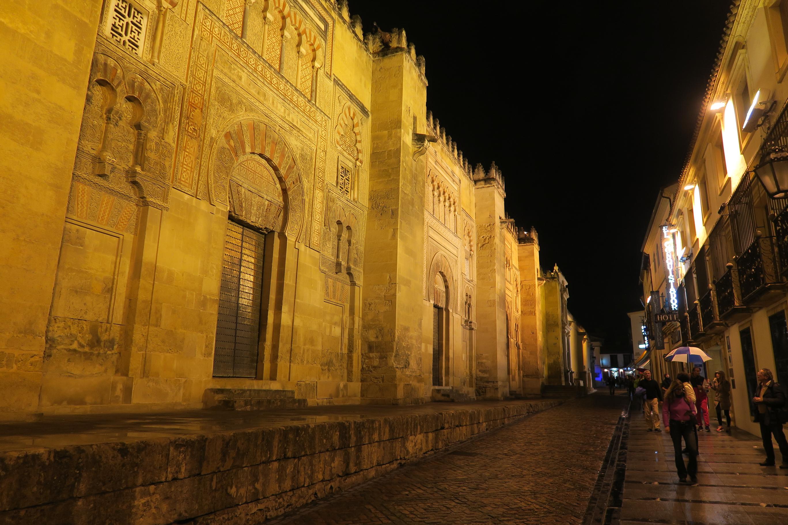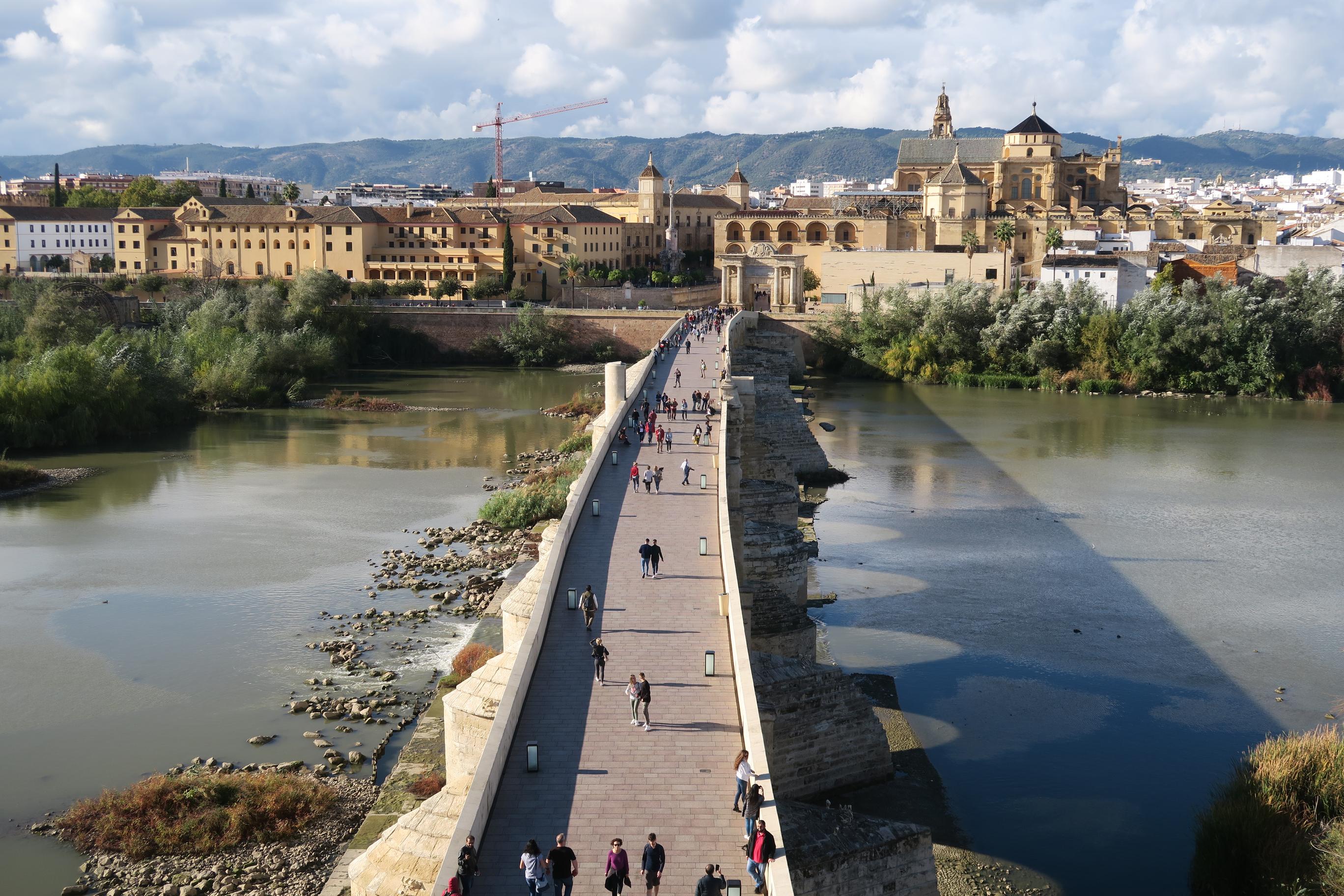 Auf der Fahrt nach Cordoba löste sich eine Abdeckung über dem linken Vorderrad und schleifte (auf der Autobahn!) kilometerlang auf der Straße, bis wir zur nächsten Ausfahrt kamen und die kaputte Abdeckung entfernten. Es lohnt sich halt doch, wenn man ein Taschenmesser dabei hat…. 🙂 Zwischendrin gings dann noch durch einen Wolkenbruch, aber wir kamen wohlbehalten in Cordoba an. Nur das Hotel fanden wir nicht…. Sind 3x dran vorbeigefahren, da der Name „vor Ort“, am Hotel angebracht,… ein ganz anderer ist, als es im Internet heisst. Aber auch das konnten wir klären und unser Zimmer mit fantastischem Blick auf die Altstadt beziehen. Nach kurzer Auspackpause gings dann noch auf einen kleinen Bummel in die Altstadt.