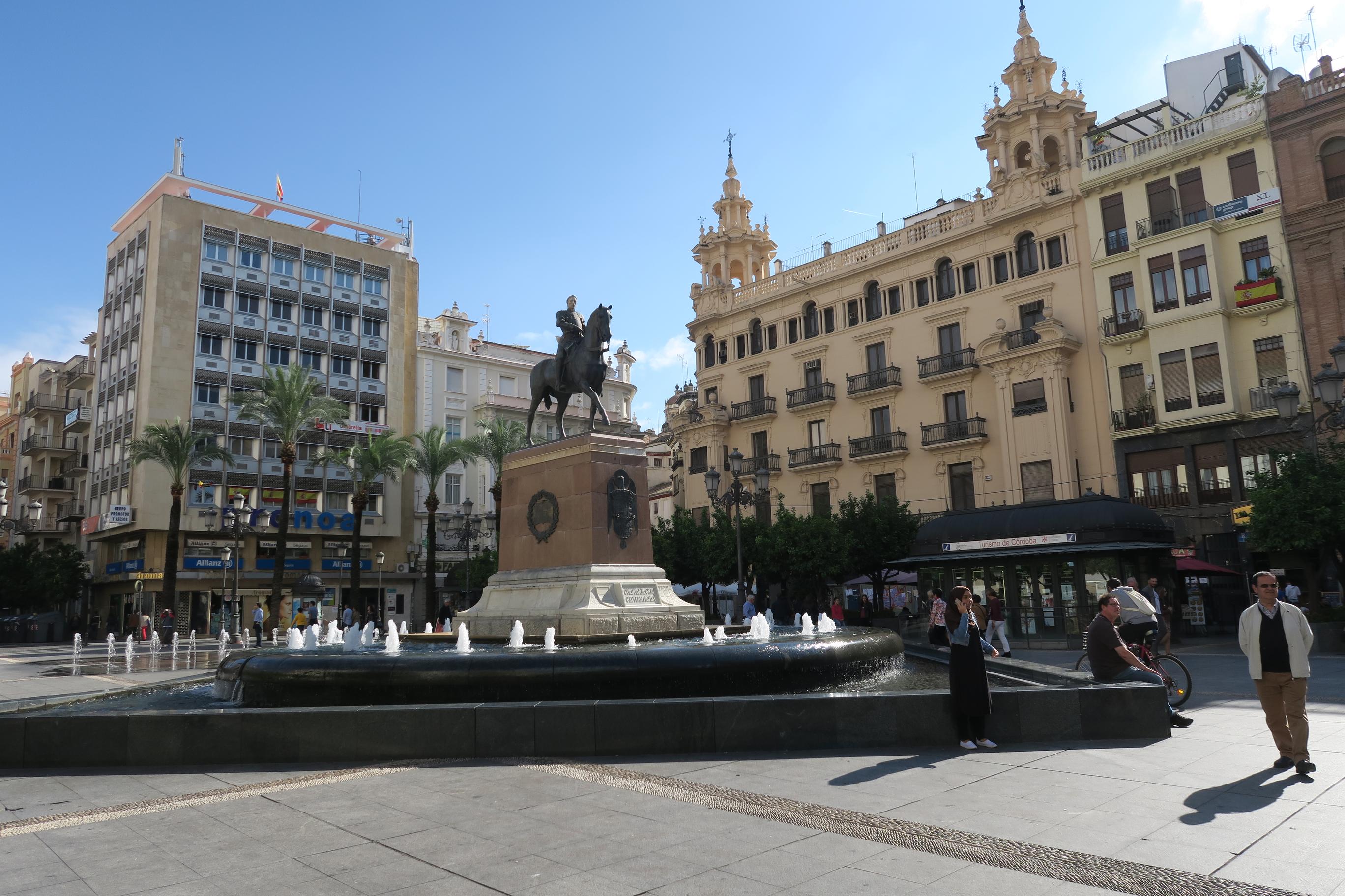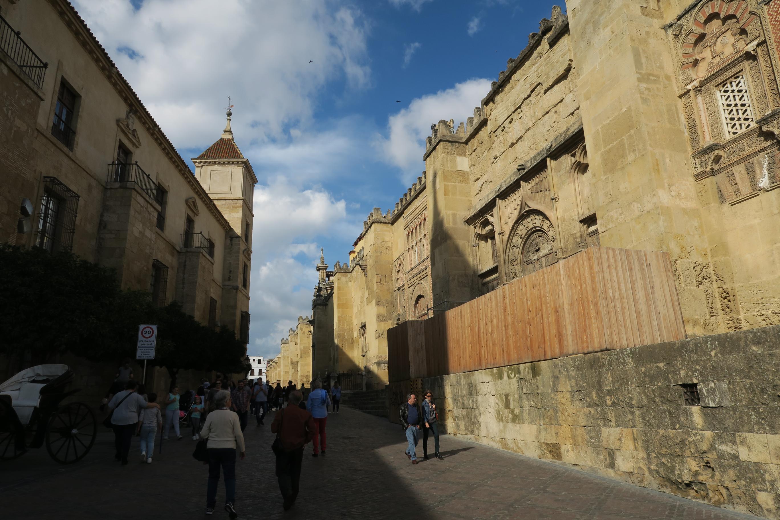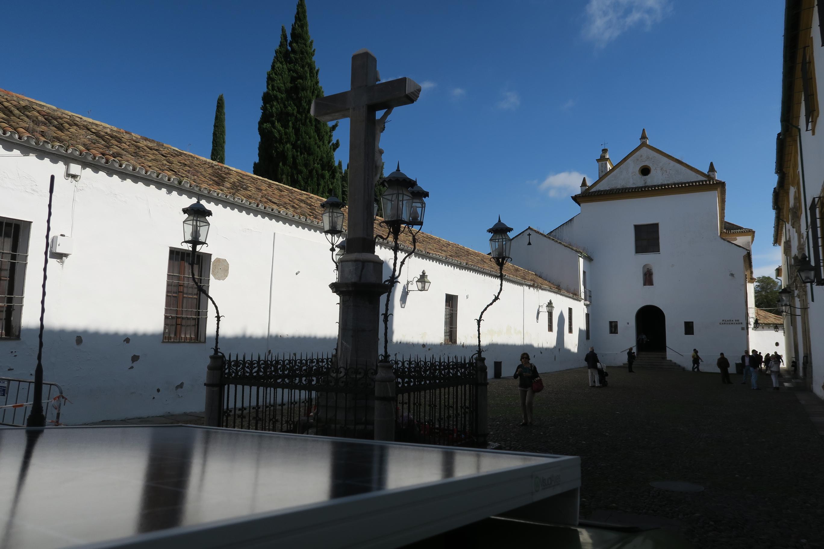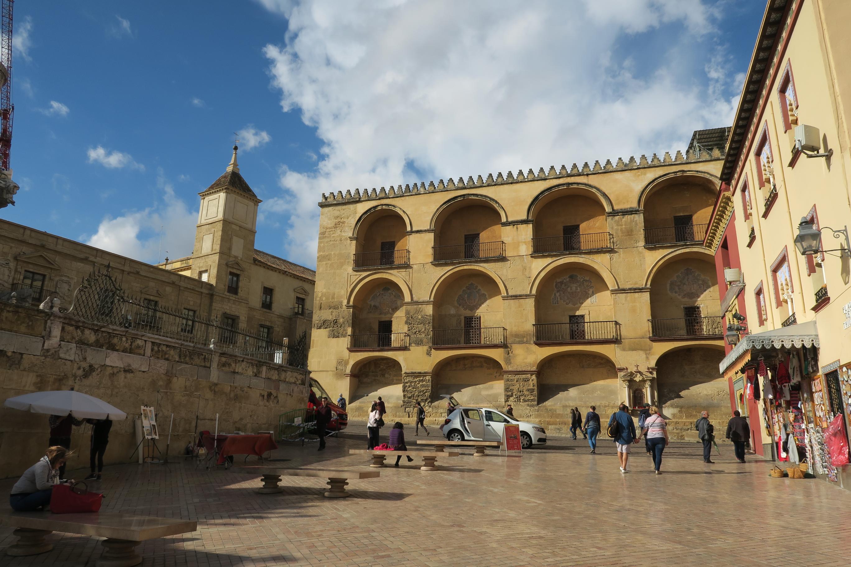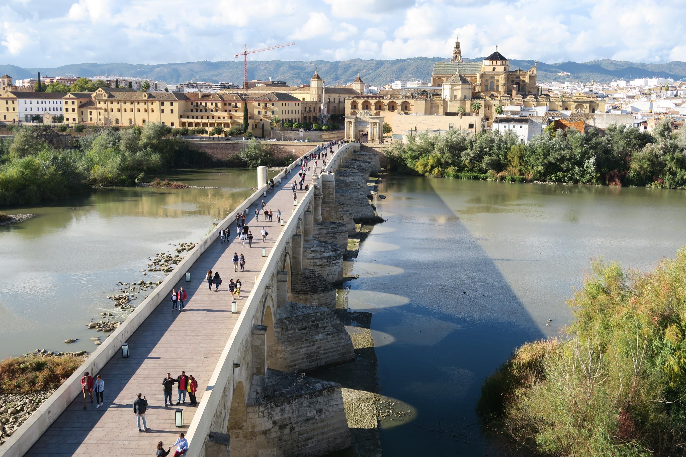 Auf der Fahrt nach Cordoba löste sich eine Abdeckung über dem linken Vorderrad und schleifte (auf der Autobahn!) kilometerlang auf der Straße, bis wir zur nächsten Ausfahrt kamen und die kaputte Abdeckung entfernten. Es lohnt sich halt doch, wenn man ein Taschenmesser dabei hat…. 🙂 Zwischendrin gings dann noch durch einen Wolkenbruch, aber wir kamen wohlbehalten in Cordoba an. Nur das Hotel fanden wir nicht…. Sind 3x dran vorbeigefahren, da der Name „vor Ort“, am Hotel angebracht,… ein ganz anderer ist, als es im Internet heisst. Aber auch das konnten wir klären und unser Zimmer mit fantastischem Blick auf die Altstadt beziehen. Nach kurzer Auspackpause gings dann noch auf einen kleinen Bummel in die Altstadt.