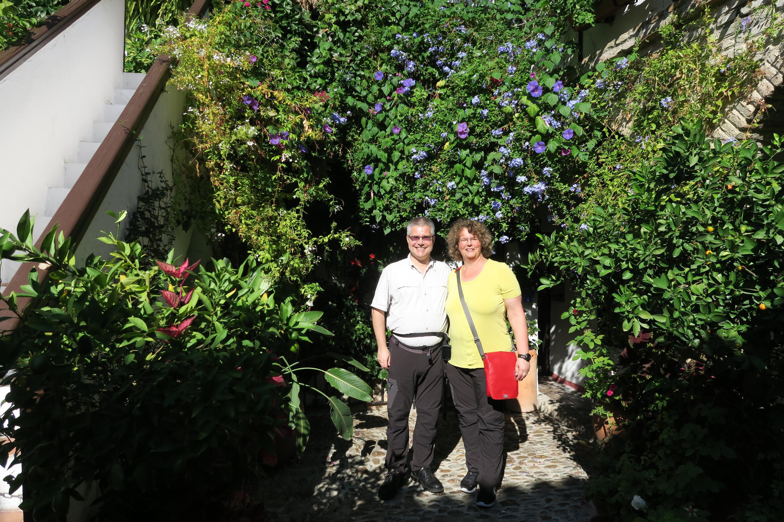 Nach einer kurzen Ruhepause im Hotel kam dann der Höhepunkt unseres Cordoba-Aufenthalts: eine Stadtrundfahrt im Dreirad-Fahrrad mit Rafael, der uns über zwei Stunden lang durch die Stadt radelte und uns dabei viel über Geschichte, Botanik und Kultur erzählte. Dabei kamen wir an viele Stellen, die wir trotz stundenlanger Wanderungsn noch nicht entdeckt hatten. Nach einem opulenten Essen gab es noch einen kleinen (6km) Verdauungsspaziergang…